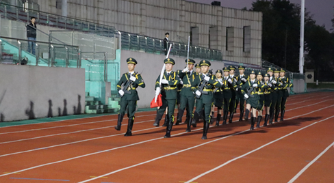 随着主持人宣布升旗仪式的开始,国旗护卫队迈着矫健的步伐,护送着鲜艳的五星红旗走向升旗台。全场师生肃立,目光紧随国旗。在雄壮的国歌声中,五星红旗冉冉升起,迎风飘扬。这一刻,全体师生的爱国情怀油然而生,共同表达着对祖国的热爱与祝福。